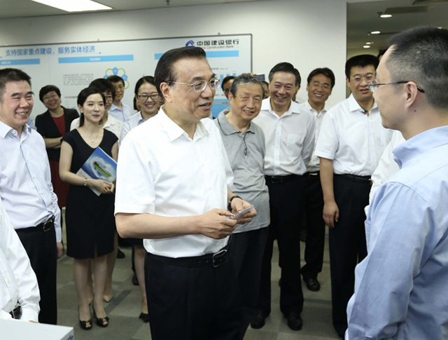 2016年6月20日,李克强在中国建设银行考察。新华社记者 庞兴雷 摄