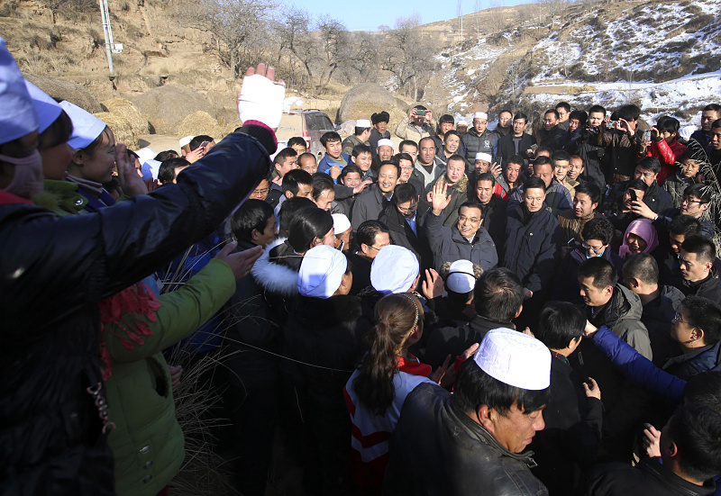 2016年2月1日,李克强考察宁夏固原西吉县半子沟村。这是西海固最贫困的村,已被列入今年易地扶贫搬迁计划。闻讯赶来的村民聚拢在一处陡坡上,总理登上坡顶与他们交流。他询问村民是否愿搬,众口一词愿意。总理说,故土难离,但新地方照样生根,搬出去后天地就宽了!(资料图)